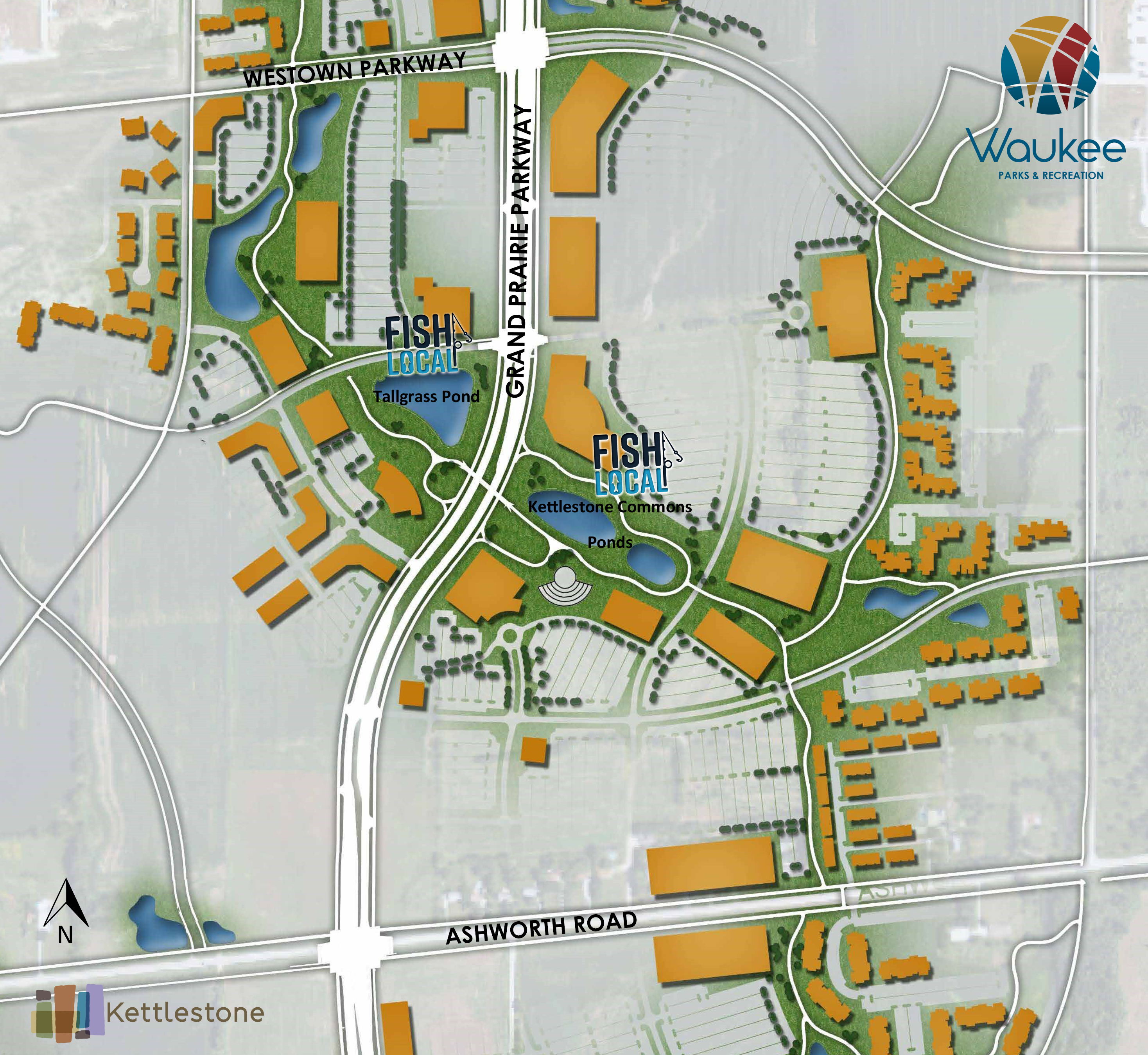 Fishing is only permitted on the City-owned 1) “Tallgrass Pond” 2) “Kettlestone Common Ponds” and 3) Triumph Park Pond between sunrise and sunset, subject to the following rules and conditions: